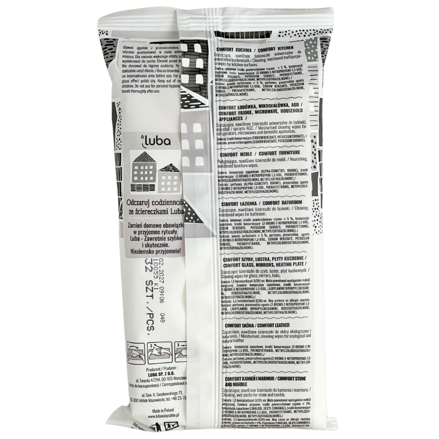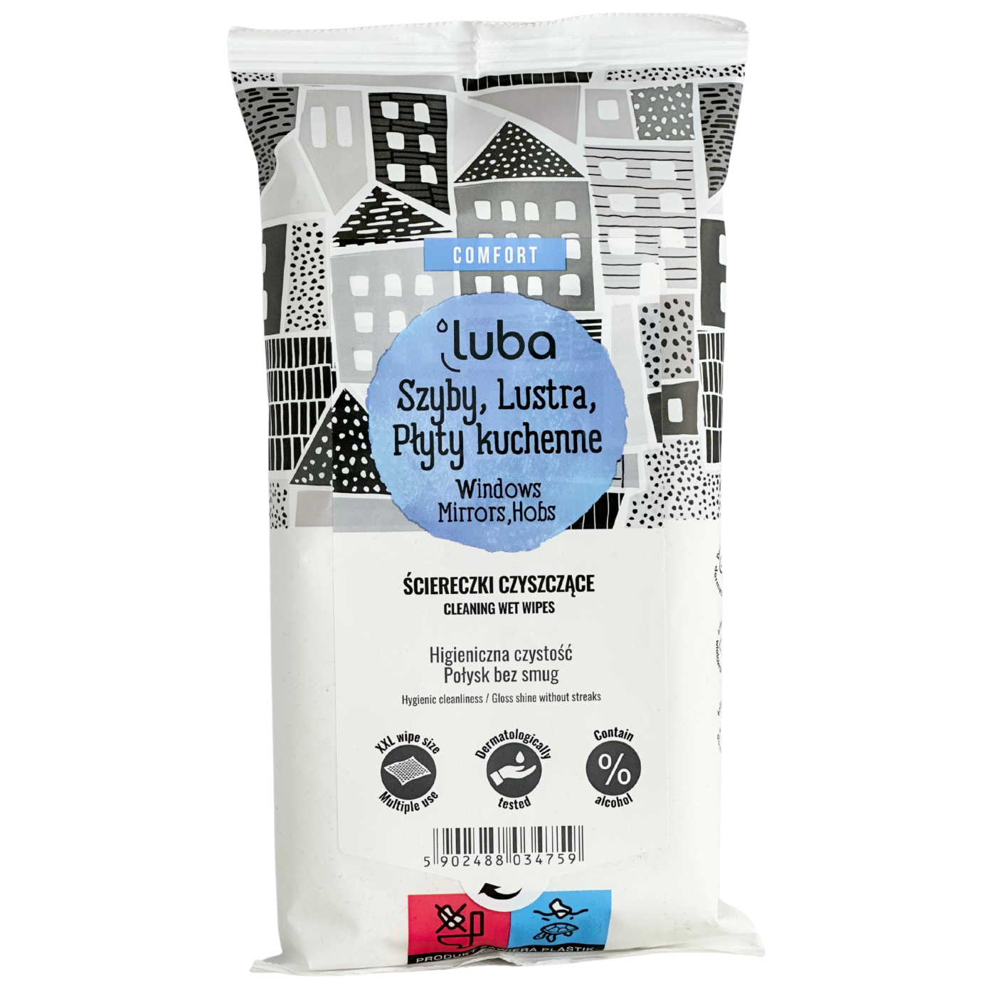 Вологі серветки для вікон, кухонних плит та дзеркал Luba Windows, Mirrors, Hobs