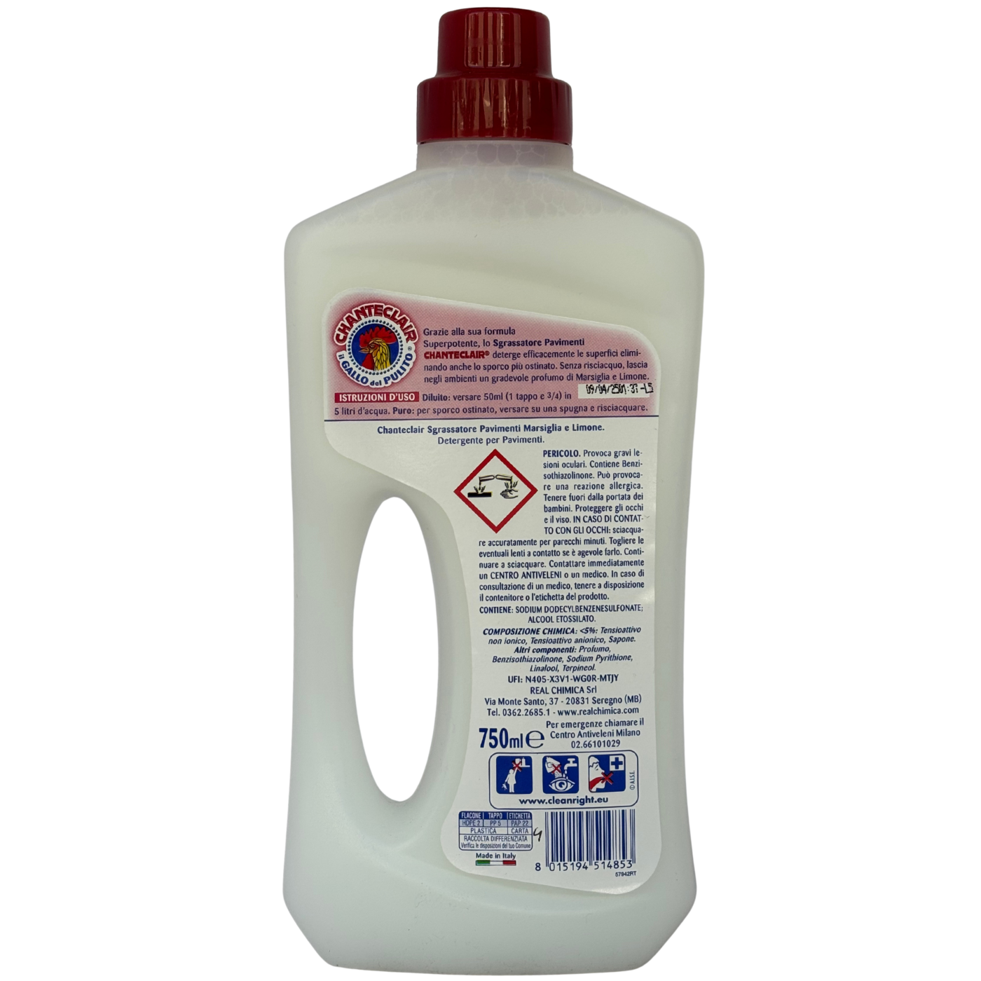 Засіб для миття підлоги Марсельське мило і лимон Pavimenti Marsiglia e limone Sgrassatore Chante Clair 750ml