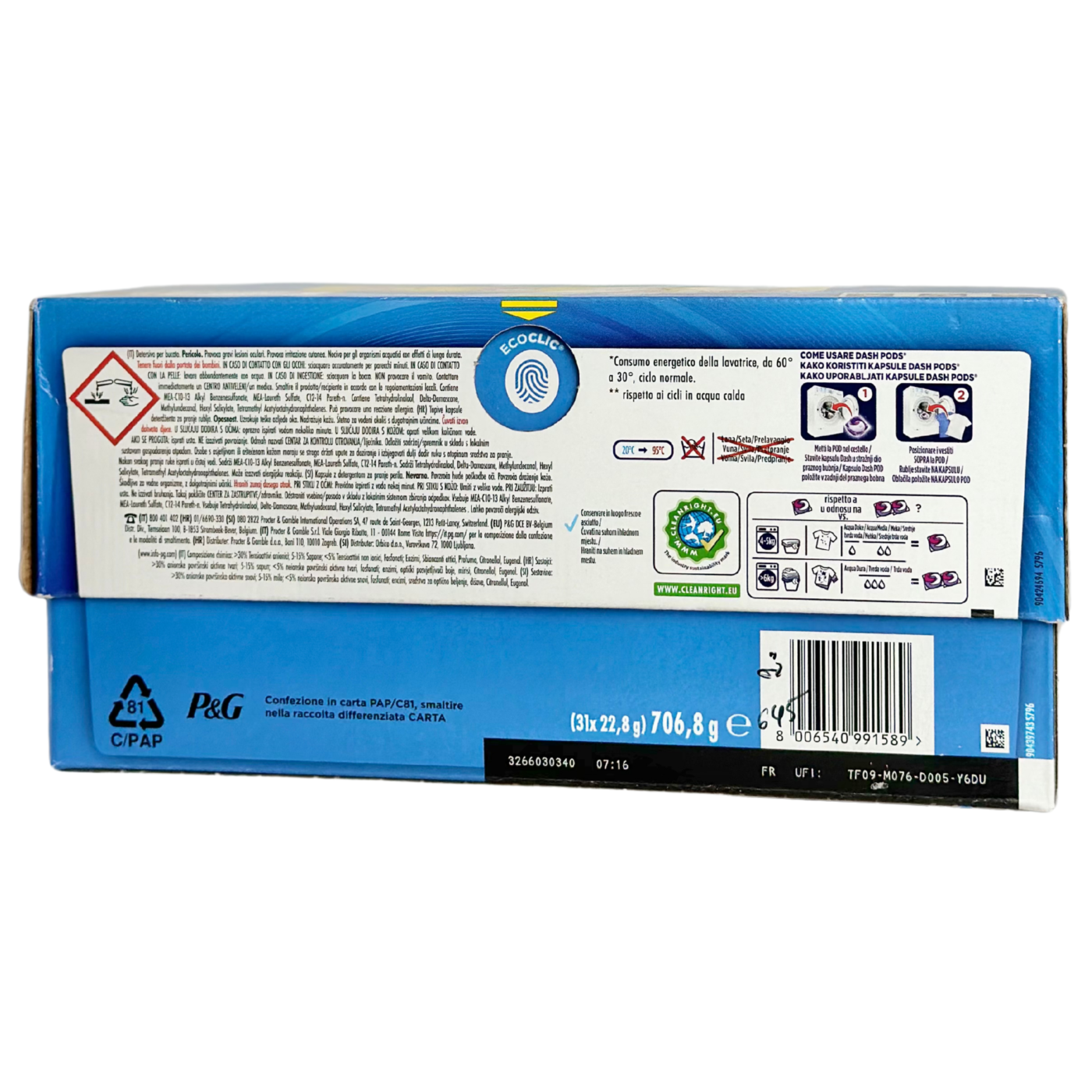 Капсули для прання кольорових речей Dash Pods Lavanda 31 шт (706,8 г) — зручний і ефективний засіб для делікатного прання кольорового одягу. Кожна капсула містить концентровану формулу, що глибоко очищує тканину, видаляє плями та зберігає яскравість кольорів. Засіб швидко розчиняється у воді, підходить для прання при різних температурах і дарує свіжий аромат лаванди, який тримається після прання. Dash Pods Lavanda забезпечують надійний догляд за улюбленим кольоровим гардеробом, зберігаючи його чистим, яскравим і приємно пахнучим.