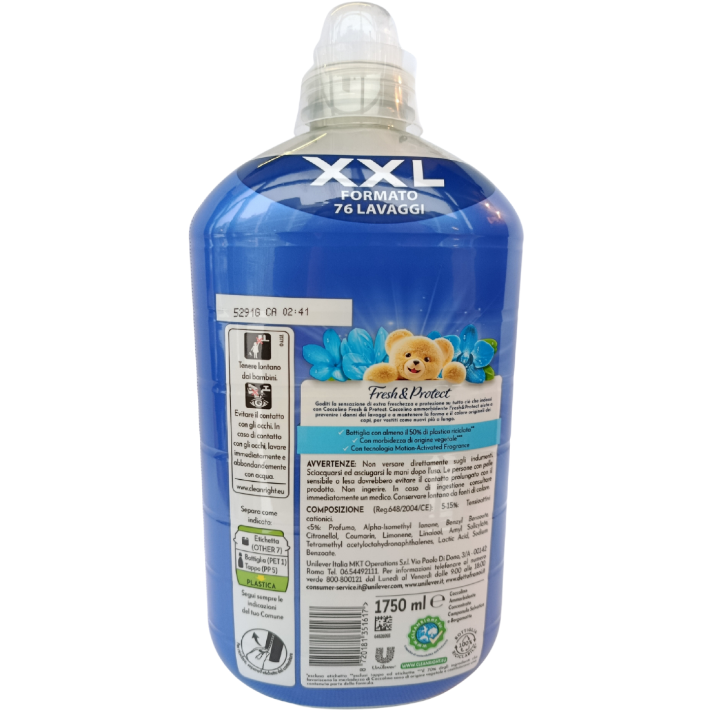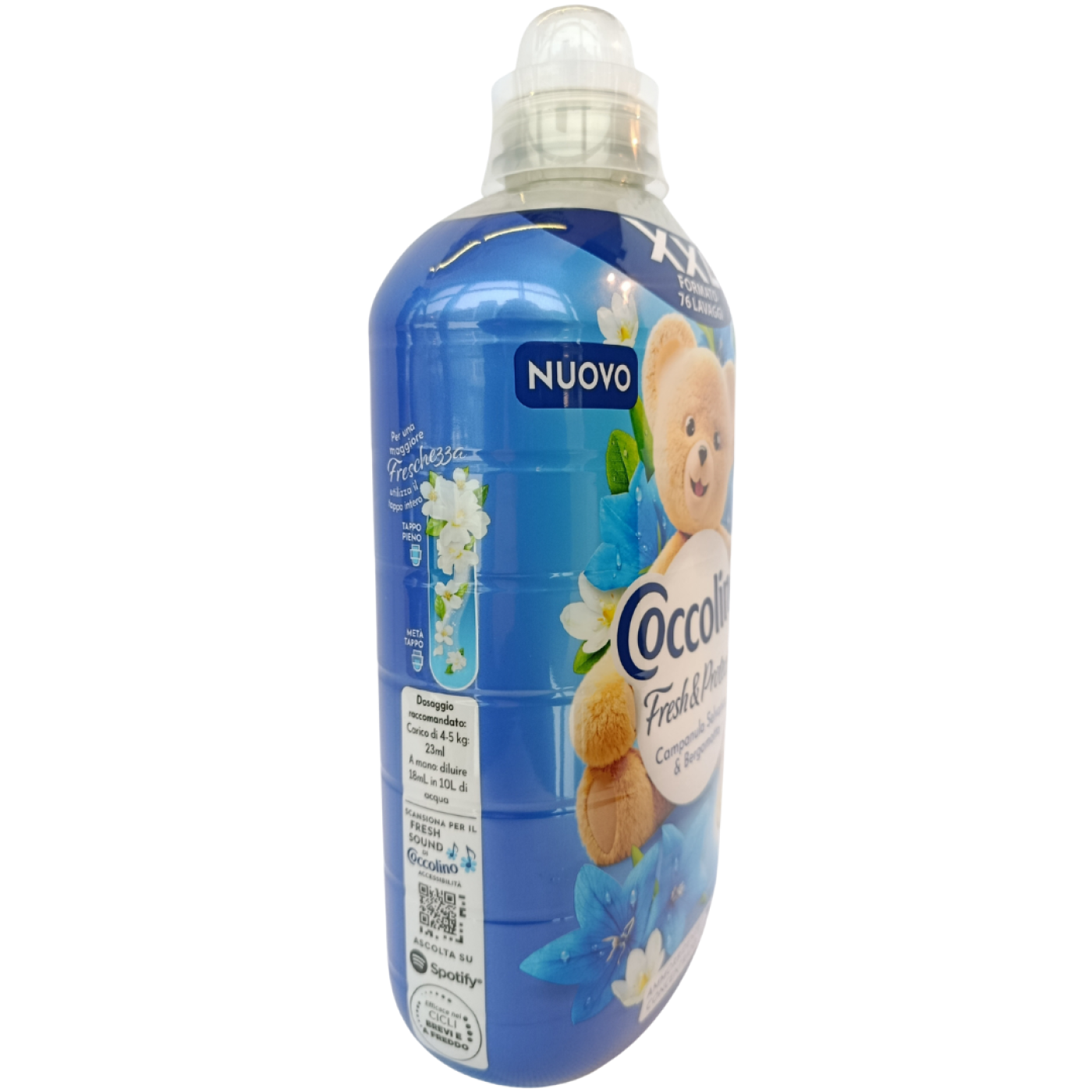 Кондиціонер для білизни Coccolino Campanula Selvatica & Bergamotto 1750 мл (76 циклів) дбайливо пом’якшує тканини, робить їх приємними на дотик, полегшує прасування та залишає свіжий аромат дикої фіалки і бергамоту після кожного прання. Засіб підходить для всіх типів тканин і забезпечує тривалий ефект свіжості та м’якості білизни.