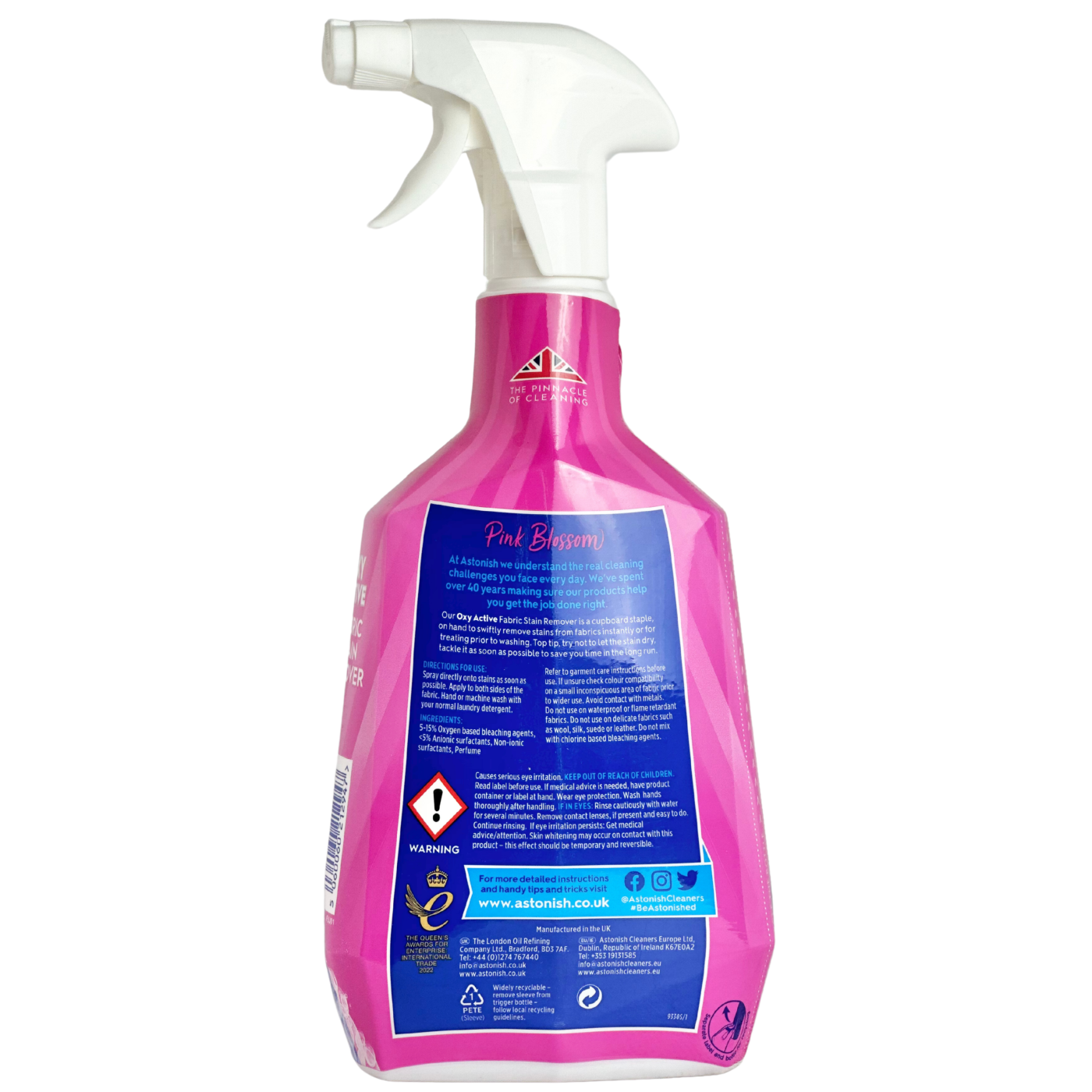 Плямовивідник із активним киснем у спреї Astonish Oxy Active ефективно видаляє складні плями з тканин навіть перед основним пранням. Завдяки активному кисню засіб проникає глибоко в волокна, розщеплює забруднення і допомагає повернути одязу чистий та доглянутий вигляд. Спрей підходить для білих і кольорових тканин, не пошкоджує матеріал і зберігає насиченість кольорів. Зручний формат у спреї дозволяє точно наносити засіб на проблемні ділянки.