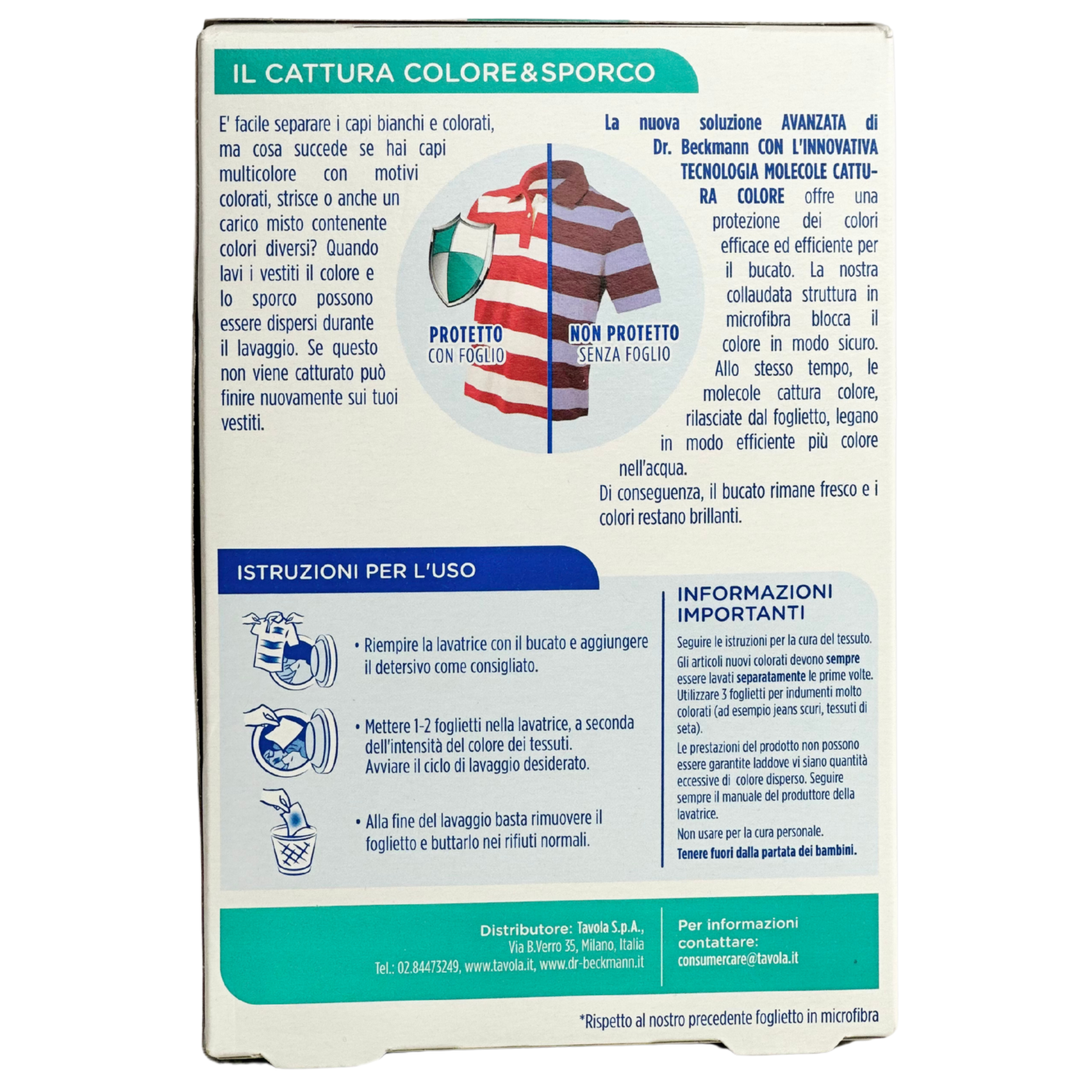 Захистіть улюблений одяг від втрати кольору та випадкового фарбування під час прання з серветками Dr. Beckmann. Спеціальна технологія абсорбції фарбувальних пігментів утримує фарбу, що вимивається з тканини, запобігаючи її перенесенню на інші речі. Ідеально підходить для прання змішаних кольорів, темних, яскравих та білих речей в одному циклі. Зберігайте насиченість кольорів і вигляд вашого одягу надовго!