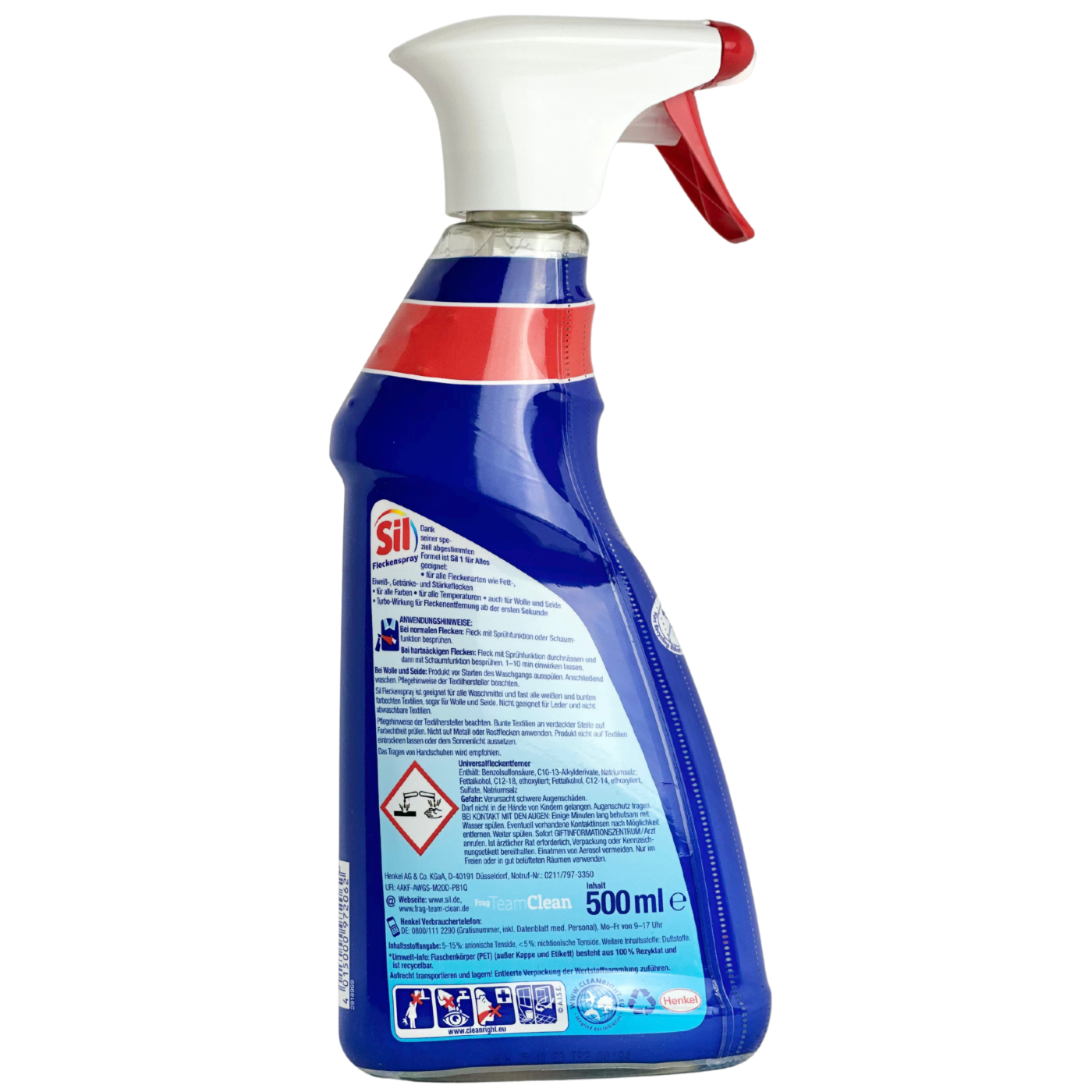 Універсальний плямовивідник в спреї Fleckenspray Sil 500 мл — це ефективний засіб для попередньої обробки одягу, який легко справляється з різноманітними типами забруднень: жиром, кров’ю, вином, кавою, травою та іншими стійкими плямами. Завдяки потужній формулі засіб проникає глибоко у волокна тканини, не пошкоджуючи їх та зберігаючи яскравість кольорів. Підходить як для білих, так і для кольорових речей. Зручний формат у вигляді спрею дозволяє легко та точно наносити засіб на проблемні ділянки. Для досягнення найкращого результату розпиліть плямовивідник безпосередньо на пляму, залиште на 5–10 хвилин (уникаючи висихання), після чого виперіть одяг у звичайному режимі навіть при низьких температурах.